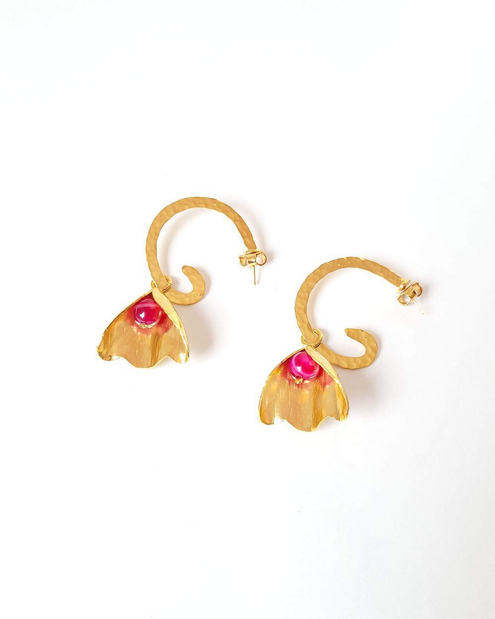 Our “Florence” maxi earrings are perfect for a special occasion, offering you a sophisticated and elegant look. A piece of handcrafted jewelry is always a perfect gift for loved ones. These exclusive earrings are meticulously handmade with a 24K gold plating and feature a design that is both classic and contemporary. They are available with fuchsia agate, pink pearls, or white pearls.